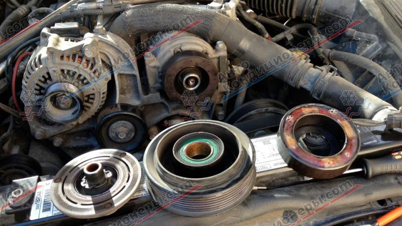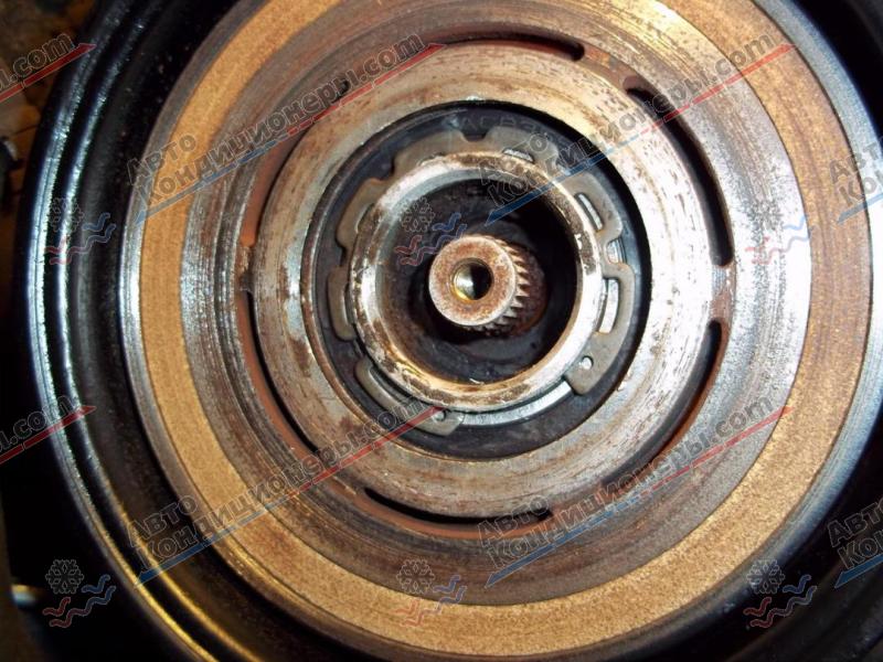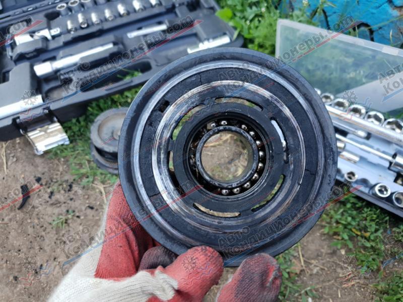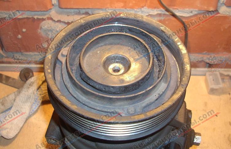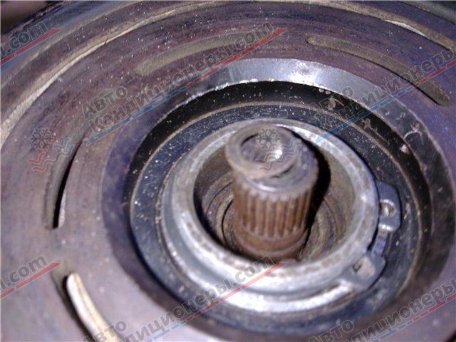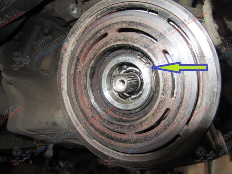 Для оценки состояния составных частей муфты, необходимо ее демонтировать с компрессора. Процесс снятия нужно выполнять в следующем порядке: