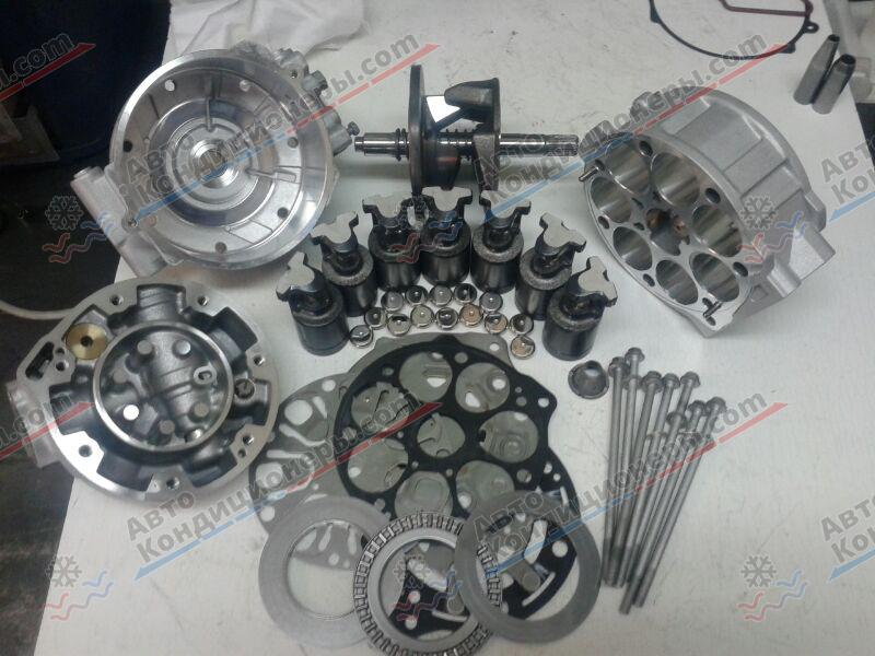 - Поломка внутренних деталей компрессора. Замена деталей, находящихся внутри корпуса – поршней, прокладок, игольчатых подшипников – чрезвычайно трудоёмкая и дорогостоящая процедура. Выполнять такой ремонт нецелесообразно, проще и быстрее целиком заменить компрессор.