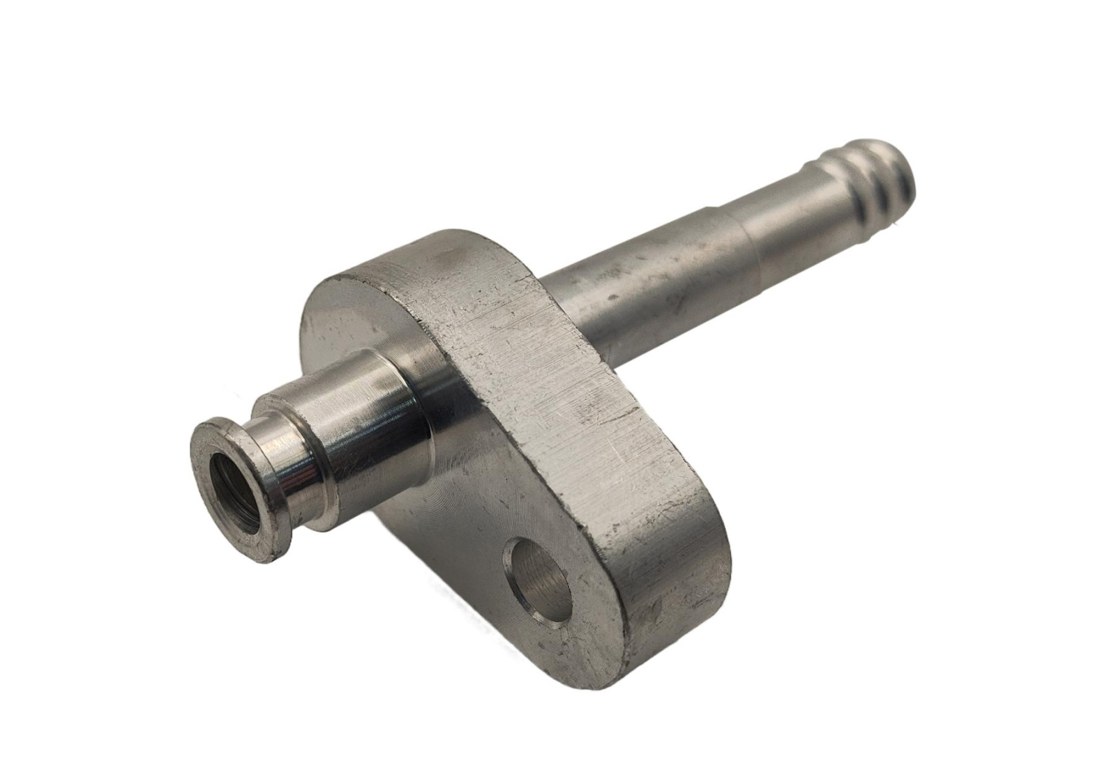 Прямой фитинг с площадкой для подсоединения к расширительному клапану ТРВ в системе автокондиционера. На одном конце притягивается к запчасти с помощью площадки, на другом вставляется в кондиционерный шланг.