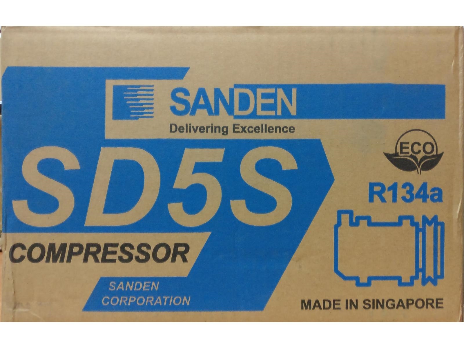 Оригинальный компрессор. Sanden 5H14 (5S14), электромагнит на 12 вольт, муфта под клиновой ремень. Подлинность изделия можно проверить на сайте компании производителя sanden.com.sg