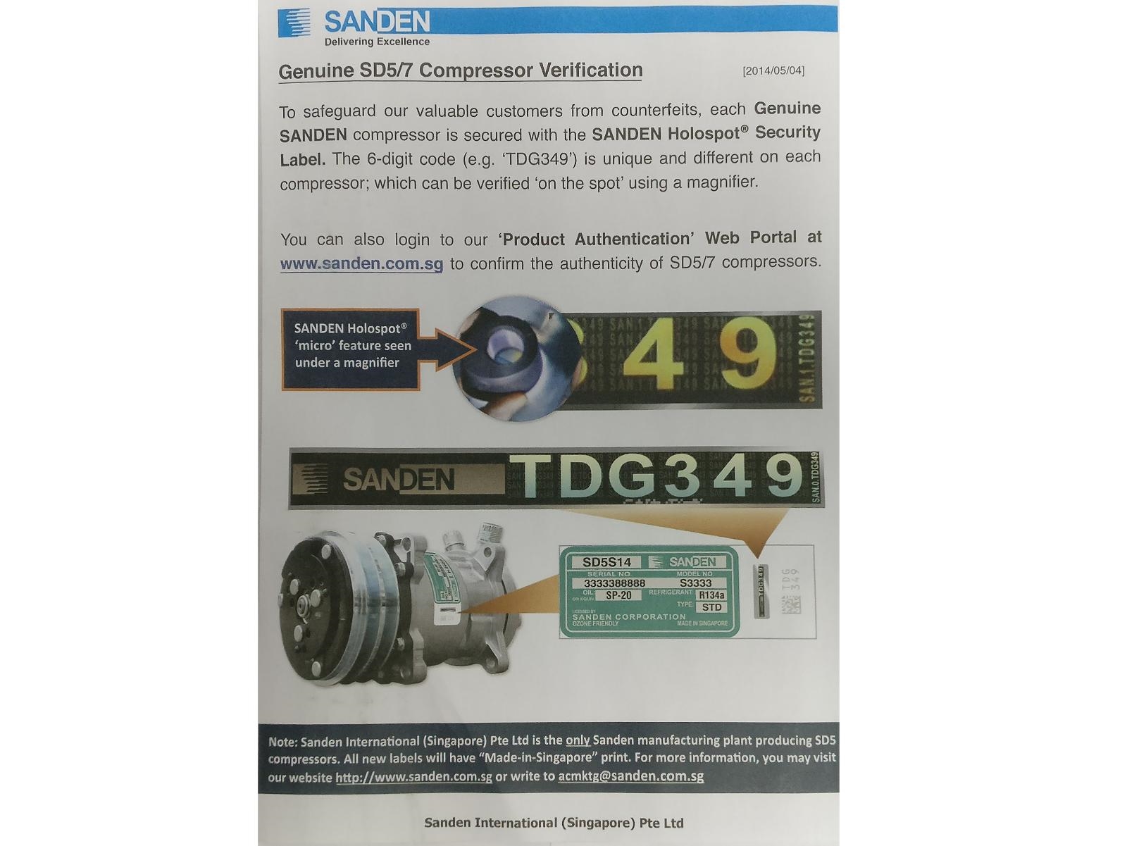 Оригинальный компрессор. Sanden 7H15 (7S15), электромагнит на 12 В, муфта под клиновой ремень. Подлинность изделия можно проверить на сайте компании производителя sanden.com.sg