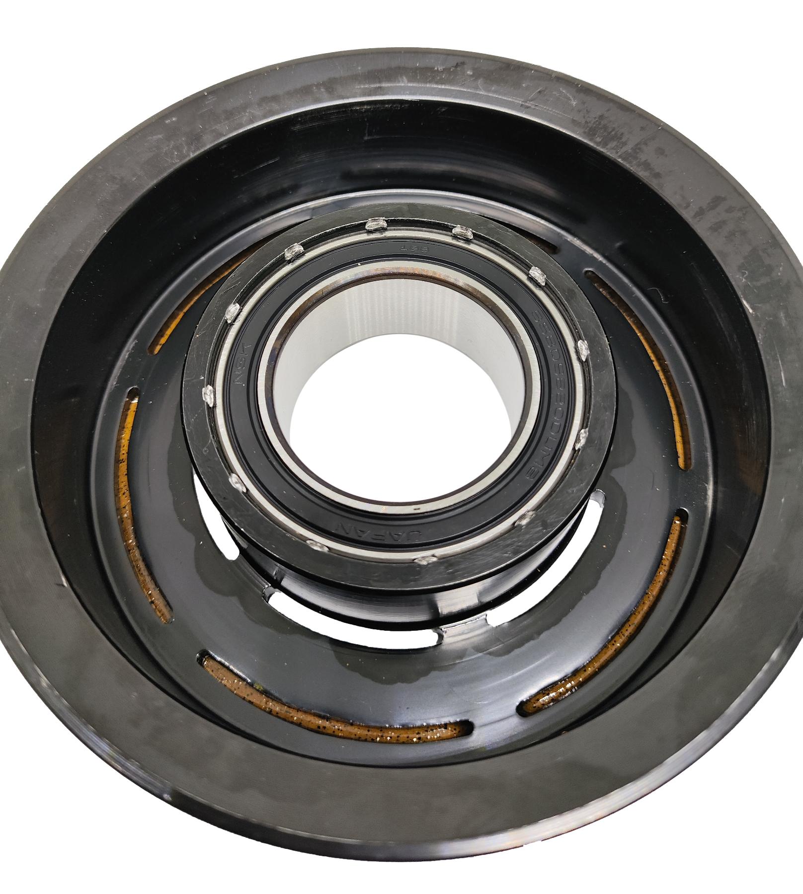 Электромагнитная муфта в сборе (шкив с японским подшипником NSK, прижимная пластина, электромагнит, стопорные кольца шкива и электромагнита, болт прижимной пластины, регулировочные шайбы) для компрессора кондиционера Denso 6SAS14C, 7SAS17C для автомобилей Mercedes-Benz.