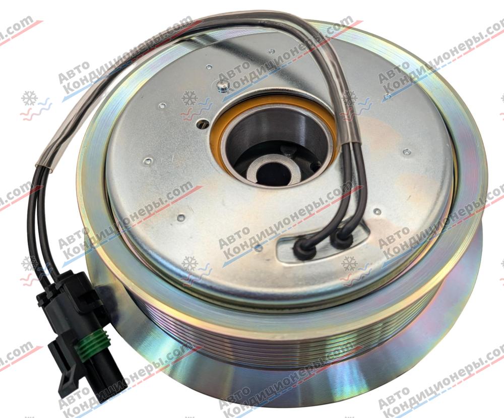 Электромагнитная муфта в сборе (шкив с подшипником, прижимная пластина, электромагнит) для компрессора кондиционера Sanden 7H15 для спецтехники, комбайна, трактора Buhler Versatile РостСельМаш 190-220 / SX235-275