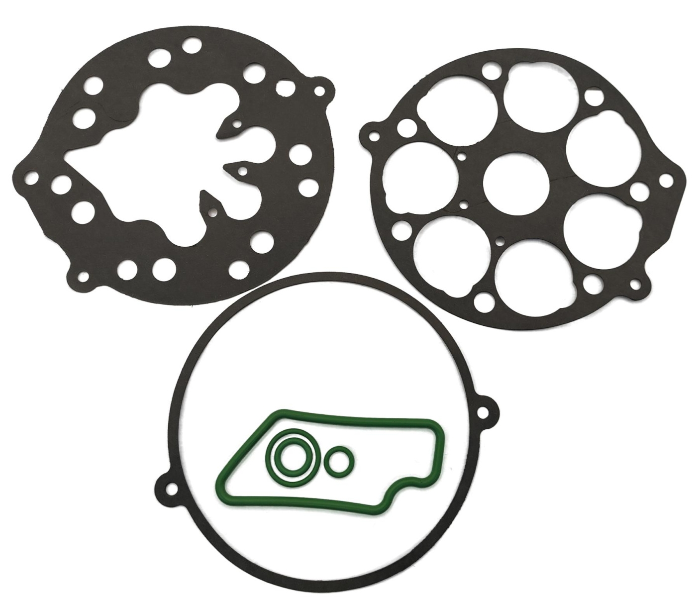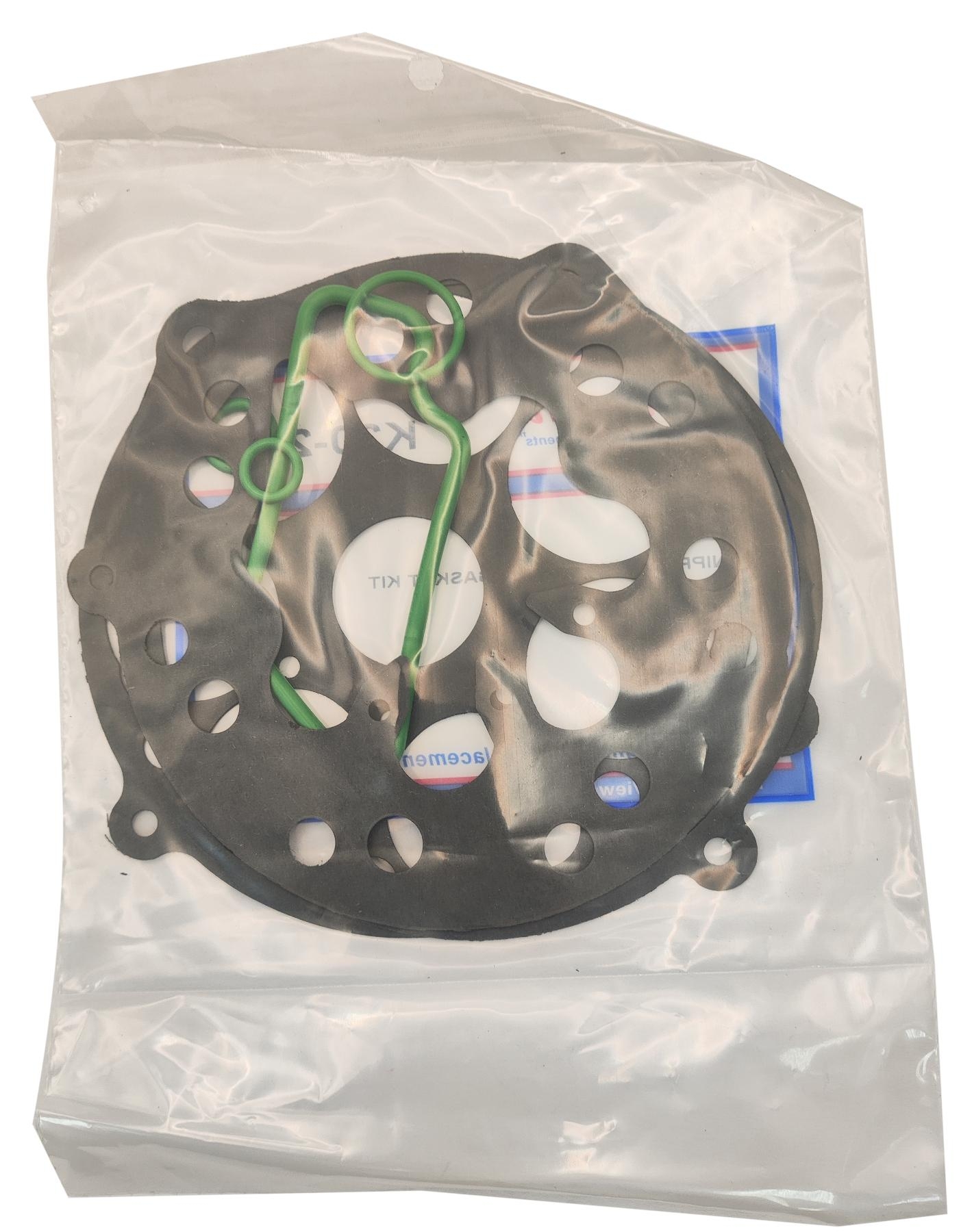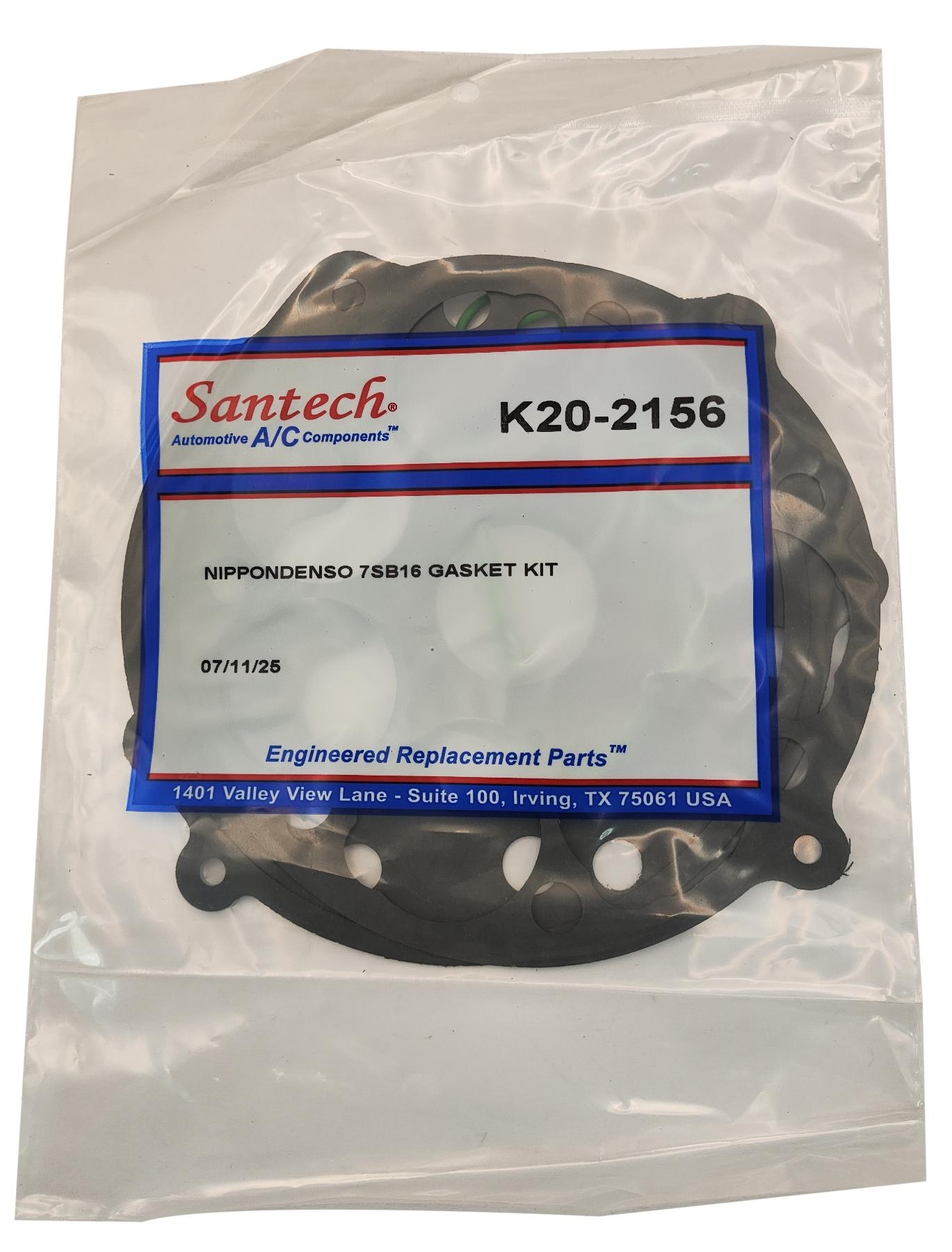 Ремкомплект прокладок для компрессора кондиционера Denso 7SB16C. Резиновые уплотнители из резины повышенной выносливости HNBR, проладки из фибры. Производство Omega / Santech, США.