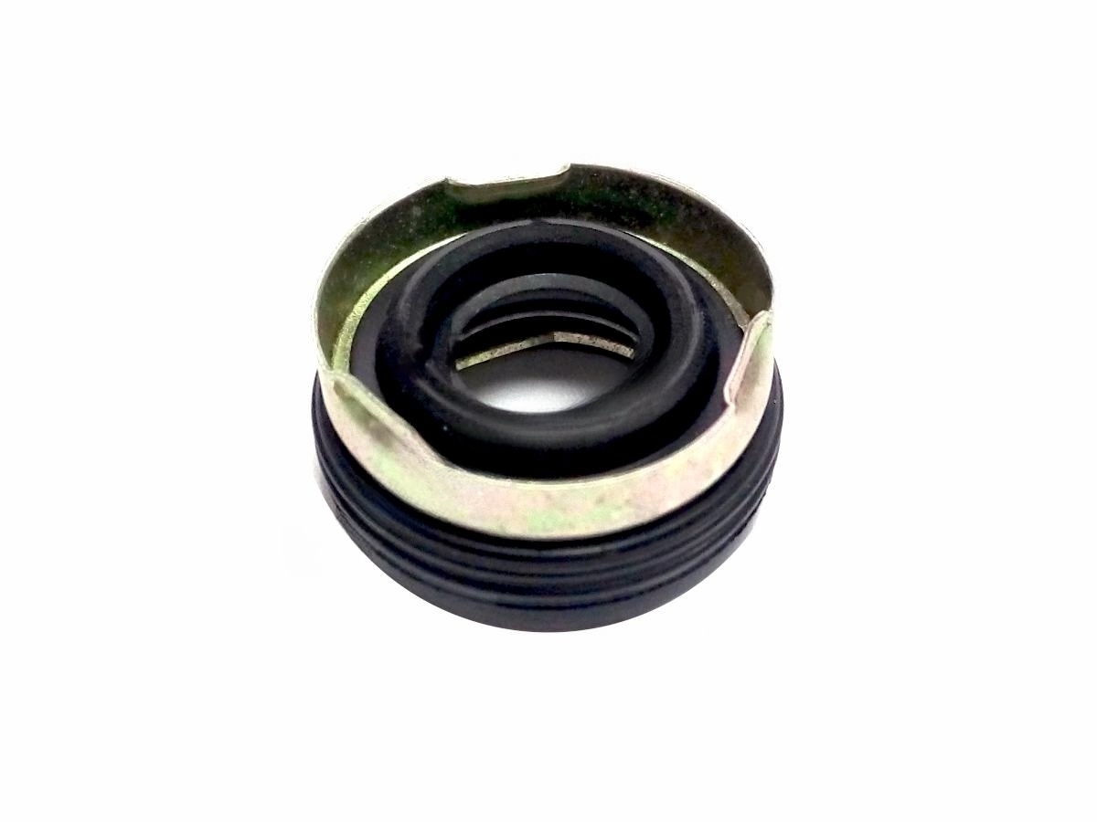 Сальник вала компрессора кондиционера Mitsubishi MSC90C, MSC105C, Sanden TRSE09 со скошенными гранями обоймы под стопорное кольцо. Данная запчасть не каталожная, подбирается по фотографии и размерам образца, которые вы можете отправить нам на электронную почту для подбора нужного сальника. Если он уже снят, то приходите к нам в магазин, мы подберем нужный сальник по старому образцу. При выборе сальника нужно учесть, что на новом сальнике внутренний диаметр намного меньше диаметра вала, не пугайтесь, это сделано специально, т.к. внутренняя часть сальника выполнена из прорезиненного материала, он достаточно эластичный и принимает нужную форму уже после установки на сам вал. Таким образом данное соединение получается плотное и надежное. Необходимо очень аккуратно устанавливать новый сальник на вал, чтобы его не порвать используются специальные оправки для запрессовки сальников.
