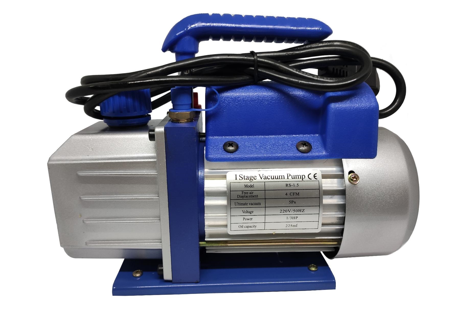 Одноступенчатый вакуумный насос RS-1,5 для вакуумировании в холодильном оборудовании и системах кондиционирования. Производительность - 85 л/мин. Предельный вакуум - 5 Па (0,05 mbar).