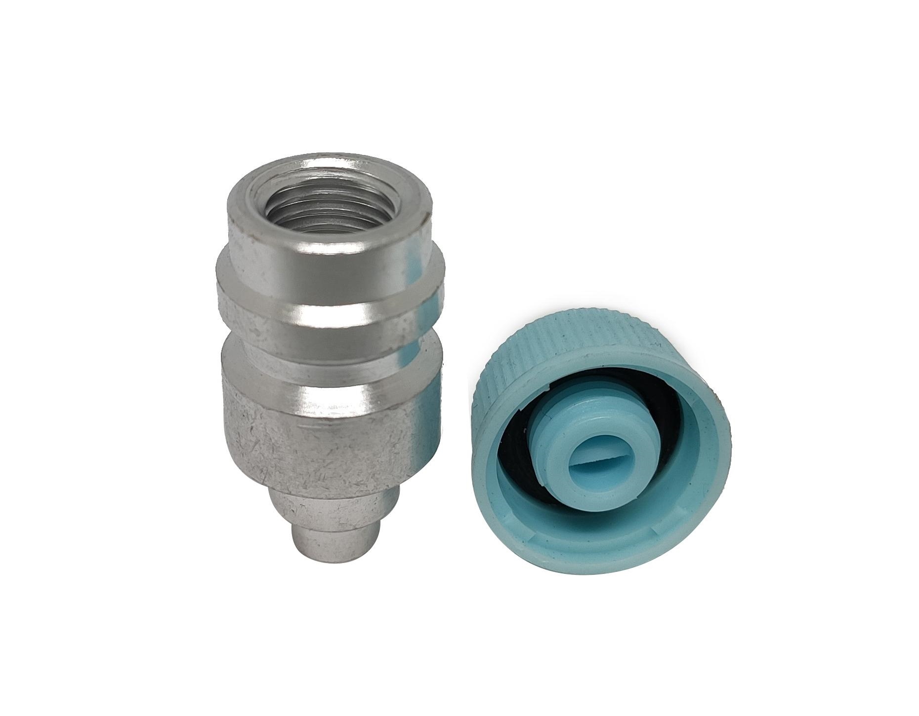 Заправочник на контур высокого давления автомобильного кондиционера под сварку. Колпачок H (High pressure, цвет голубой). Внутри заправочного штуцера золотник, который можно менять отдельно.